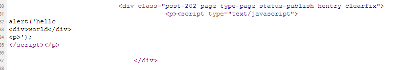 alert('hello<div>world</div>');
