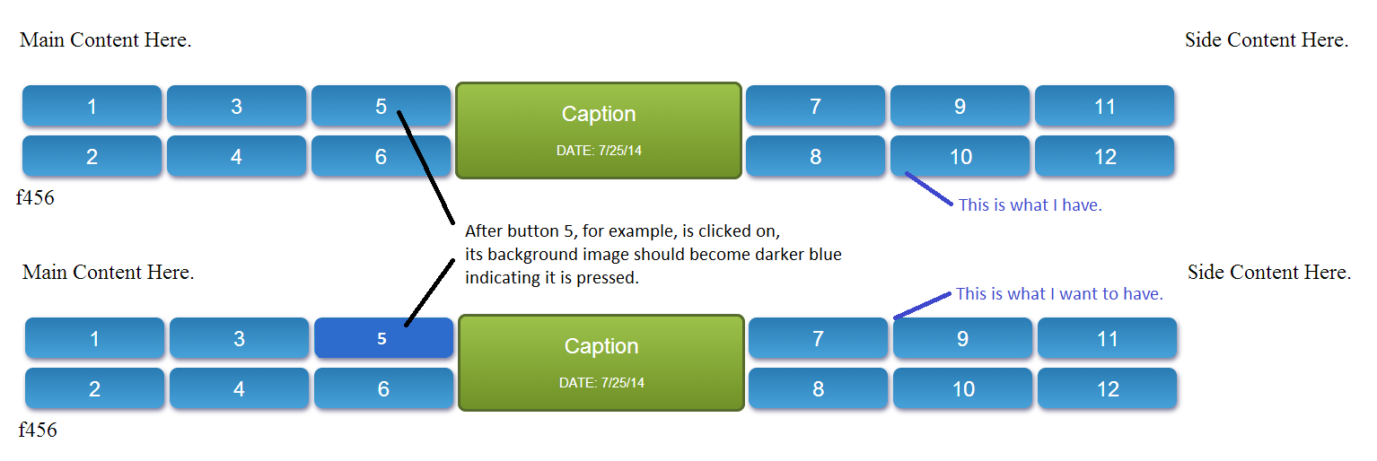 The default CSS of the buttons are also included below. Please suggest a nice looking pressed style if you know one.