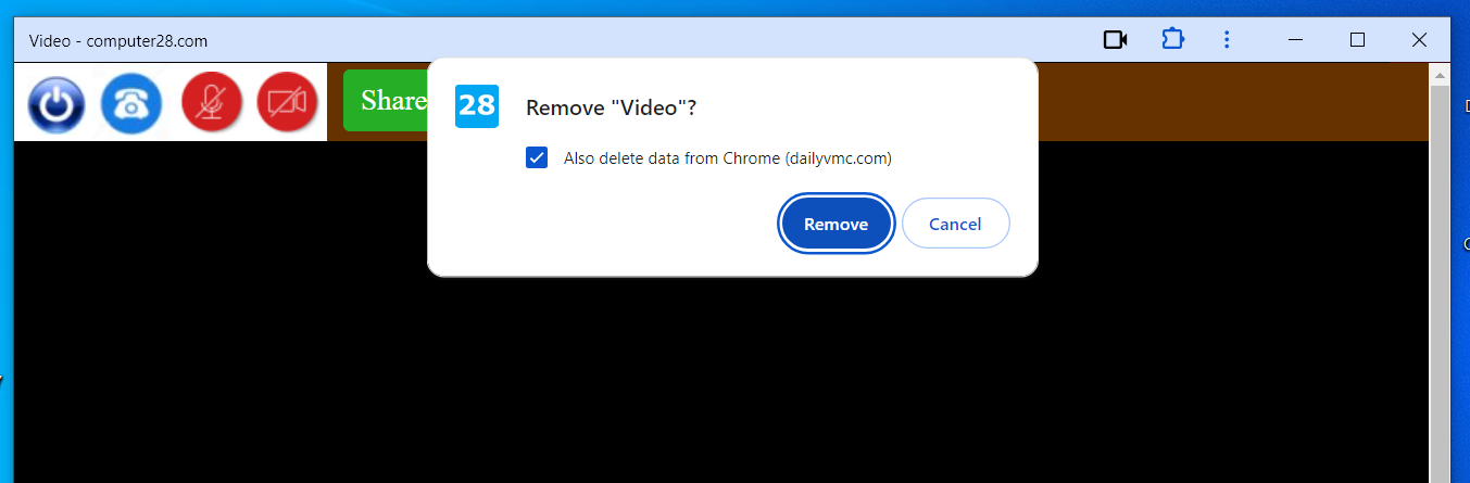 Click ︙=>Click Uninstall Video=>tick the box of 'Also delete data from Chrome' =>Click Remove Button